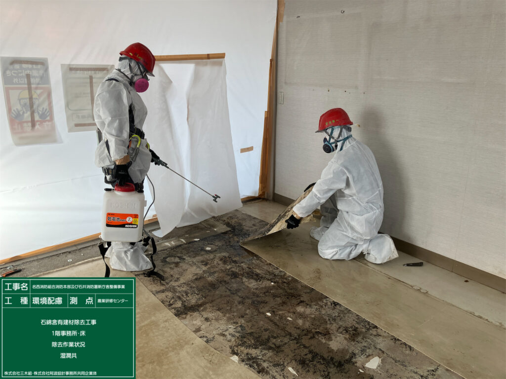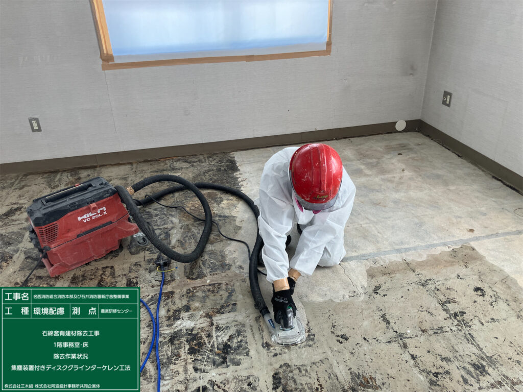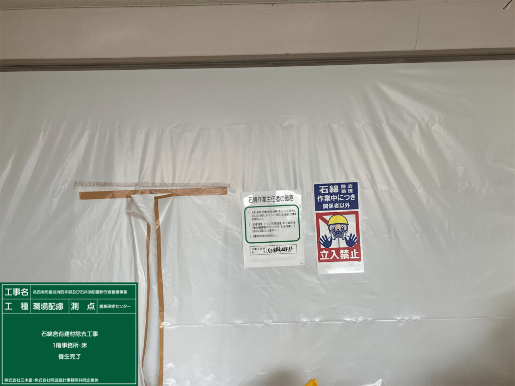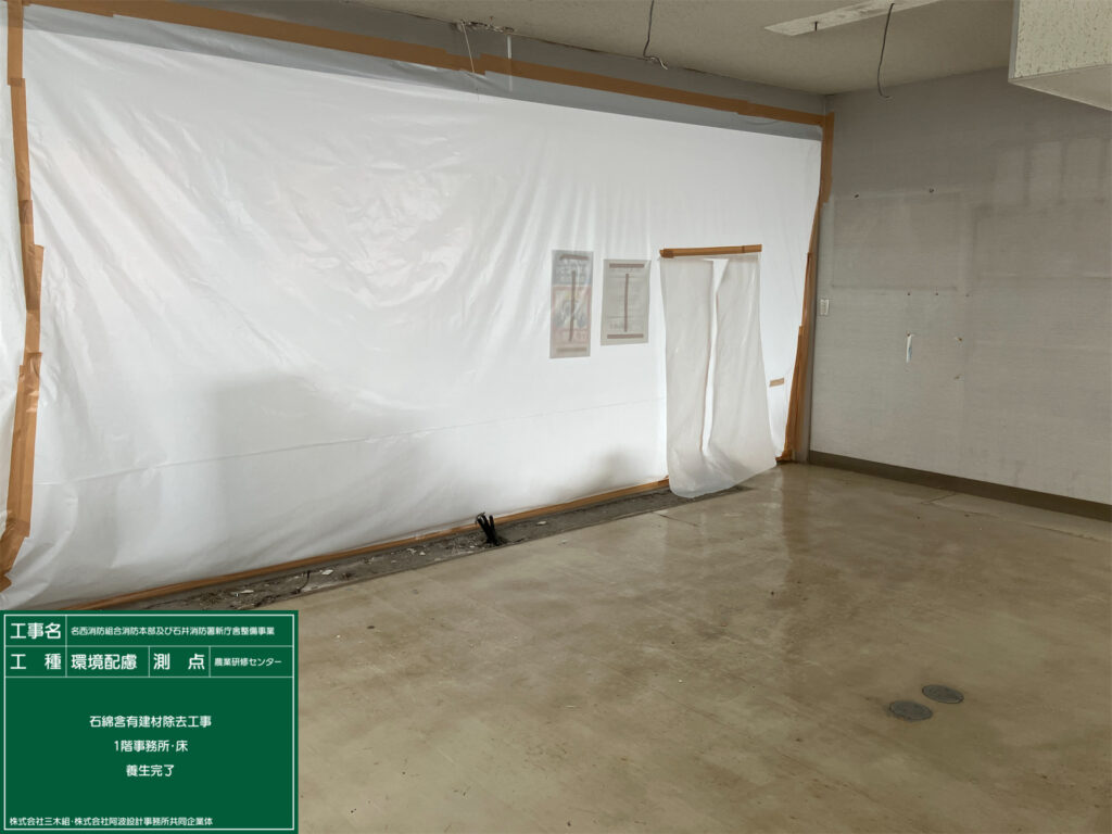施工中 現在施工中 2026.02.25 名西消防組合消防本部及び石井消防署新庁舎整備事業施工中です。 作業前状況 養生完了 養生完了 除去作業状況・湿潤共 除去作業状況・集塵装置付きディスクグラインダー工法 作業完了